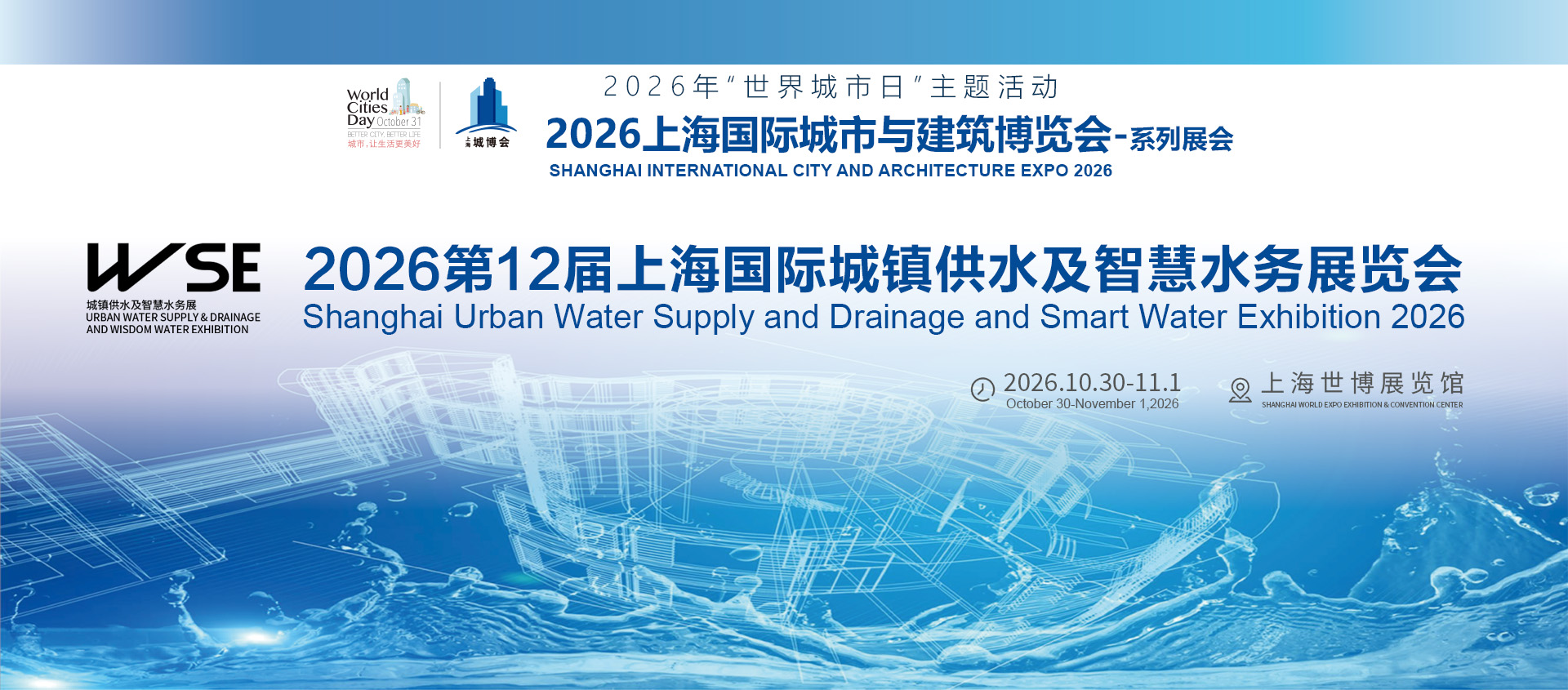 上海国际城镇供水及智慧水务展作为上海国际城市与建筑博览会(城博会)的系列展会同期举办。每年举办一次的“城博会”是"世界城市日”重要活动之一,历年来得到了社会各界的高度关注和重视,是“世界城市日”固定的线下活动,已经成为展示城市规划建设和管理成果、促进企业交流与合作的绝佳展示平台。